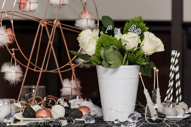 Happy Friday, friends! Here are just a 'few' pictures of a birthday party D had for me last Saturday. It was snowy and it was cold but still... 32 of us braved the blustery weather to come out. D knows that I love good food, quality wine, family, friends and lots of pretty so he and my bestie worked hard to create a magical night.